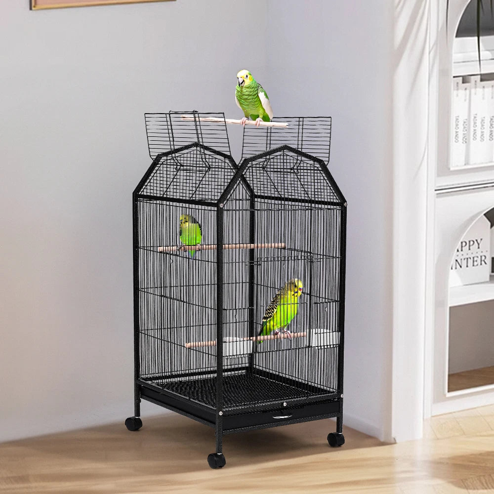 Unique Dual-Top-Door Design: Includes perch for birds to stretch outside the cage, making interaction easier and more enjoyable