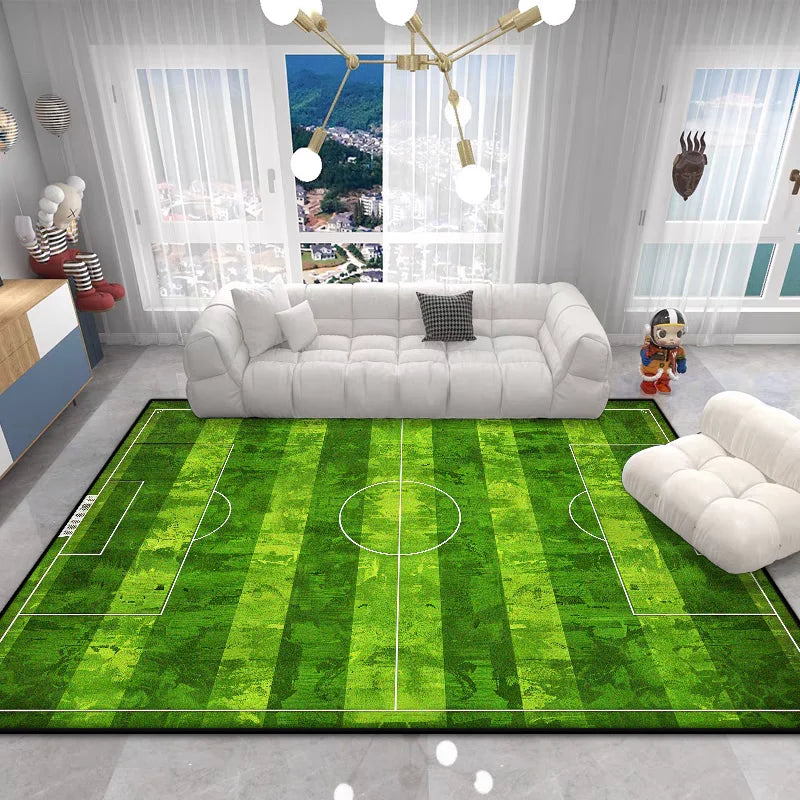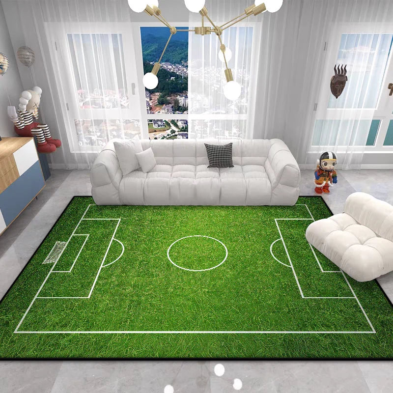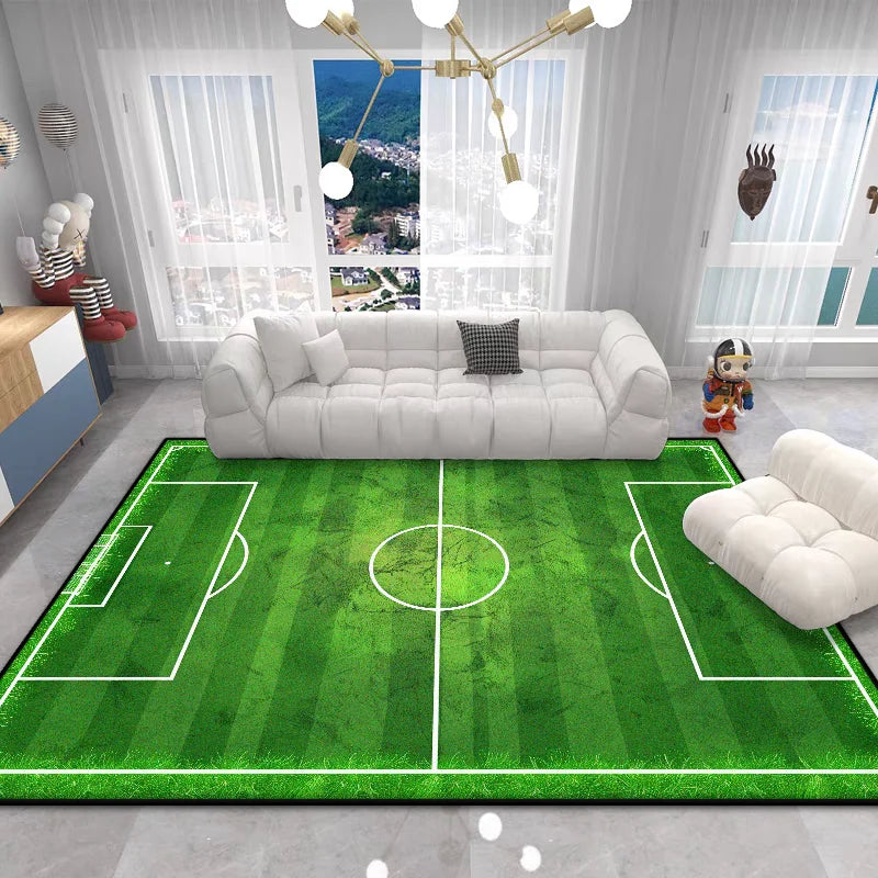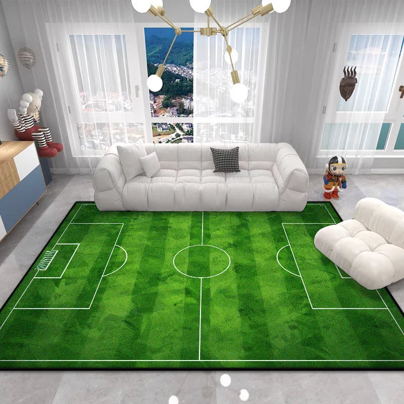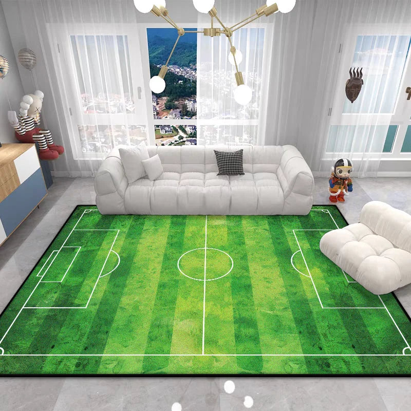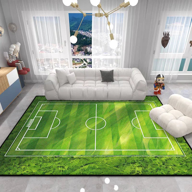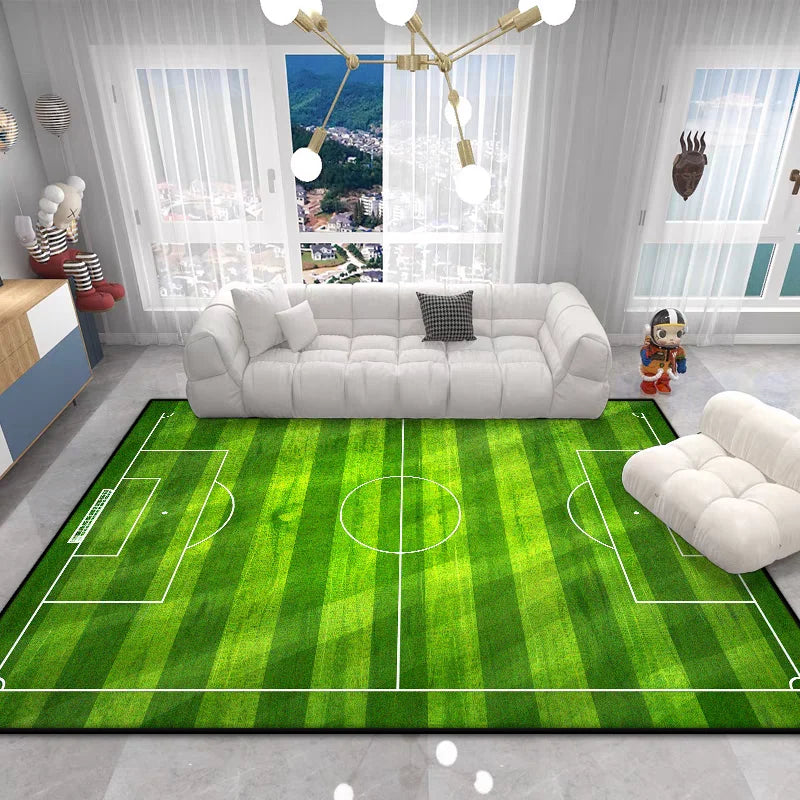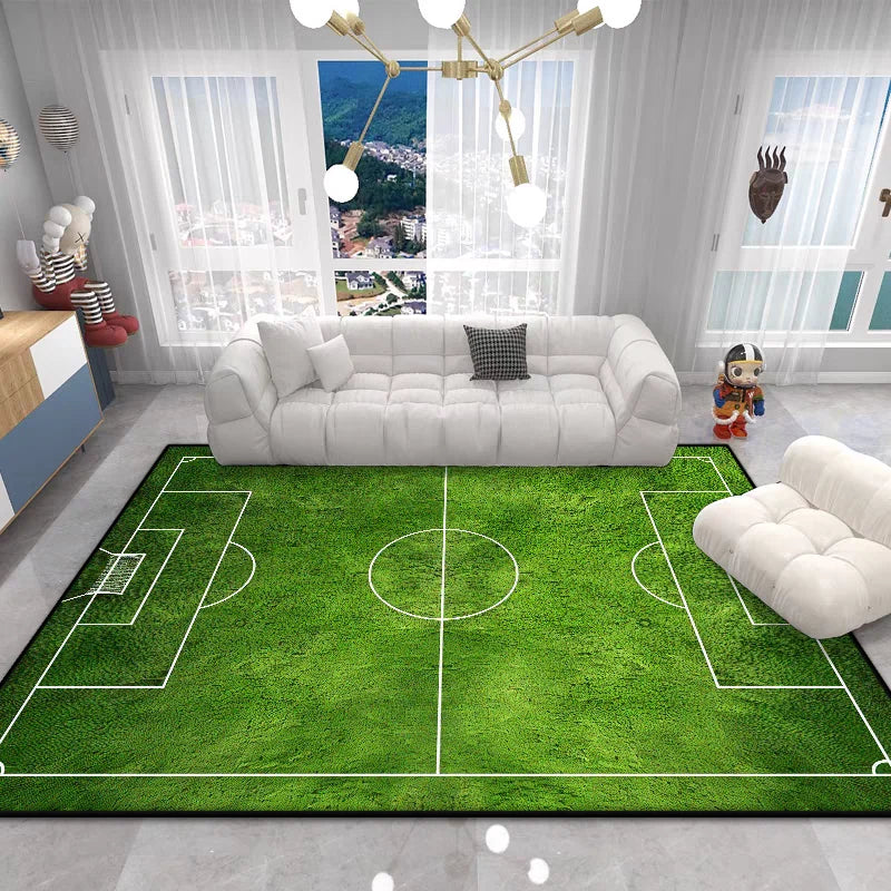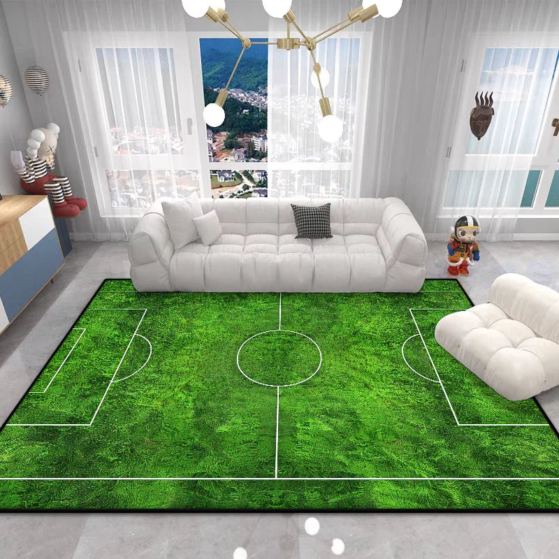The Football Field Play Area Rug brings the excitement of the game right into your home. This vibrant green plush carpet features realistic football field markings, creating an engaging play space that sparks imagination and encourages active play for children of all ages.