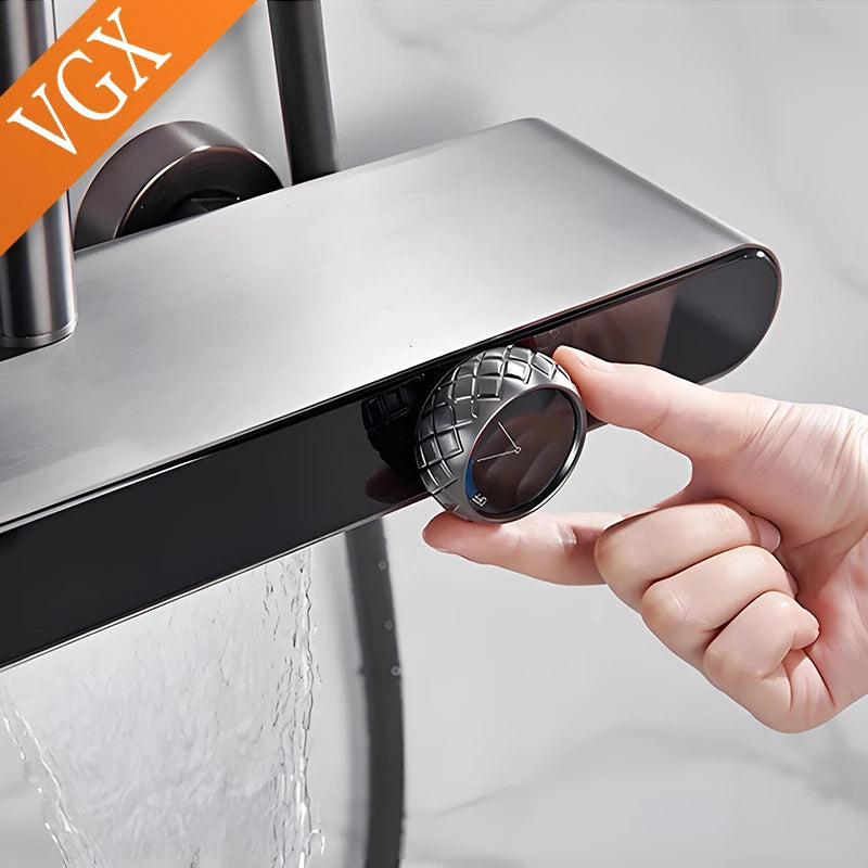 The VGX Gold Shower System in stunning white and gold brings sophisticated elegance to your bathroom. This complete 3-way rainfall shower set combines luxurious metallic accents with clean white finishes for a fresh, contemporary look that elevates any bathroom design.