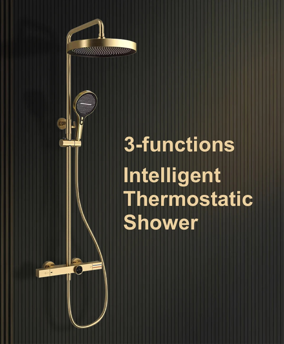 Thermostatic Gold Shower System - Luxury Brass Rainfall Bathroom Faucet Set